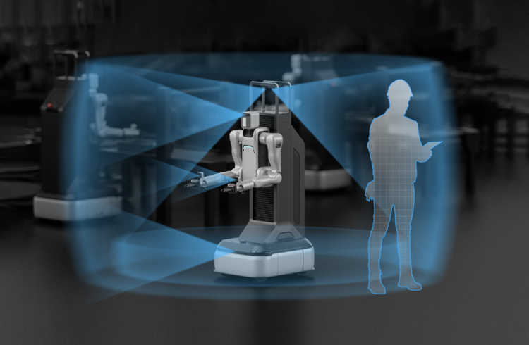 360°激光雷達(dá)+4顆AI視覺傳感器+2顆六維力覺傳感器等多傳感器融合感知,實(shí)現(xiàn)毫秒級感知與智能避障。